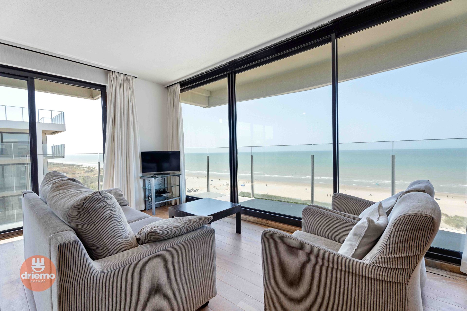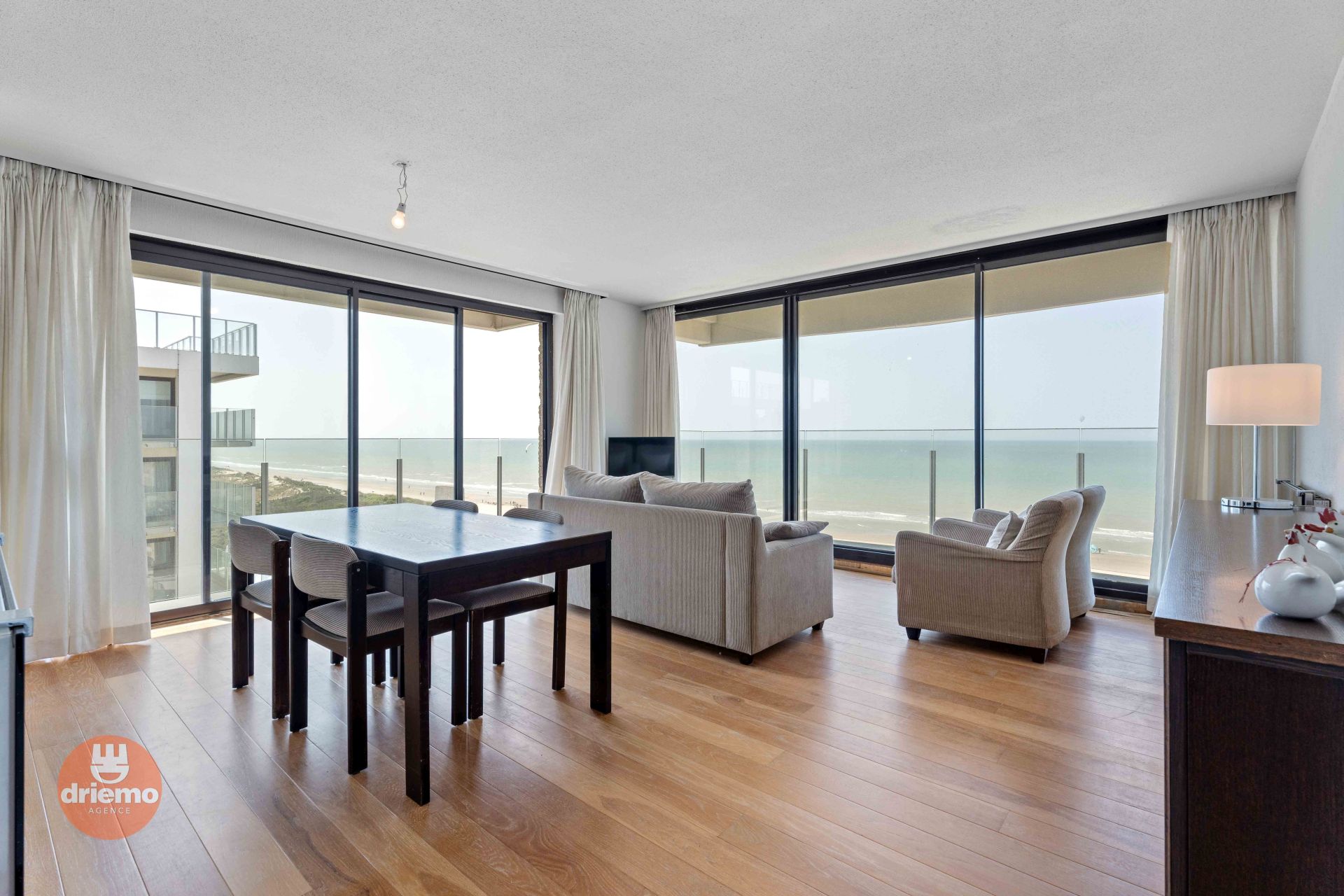 Appartement de coin avec 2 chambres à coucher et une vue imprenable sur la mer et le front de mer. DOUBLE GARAGE INCLUS sous l'immeuble.